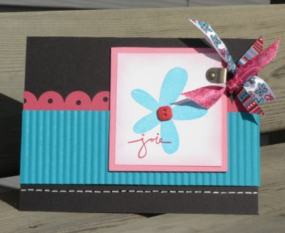 Aujourd’hui, j’ai eu un peu de temps pour jouer avec mes nouvelles étampes… J’adore ce nouveau kit d’étampes. Il est très versatile; on peut faire des cartes très « girly » et des cartes masculines avec. Vous voulez des exemples???