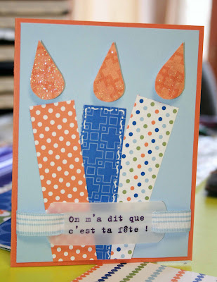 Je prends une petite minute pour vous montrer une carte que j’ai créée pour mon cours d’embossage. J’en ai profité pour relever le défi couleur de Kristina. Vraiment génial!!!