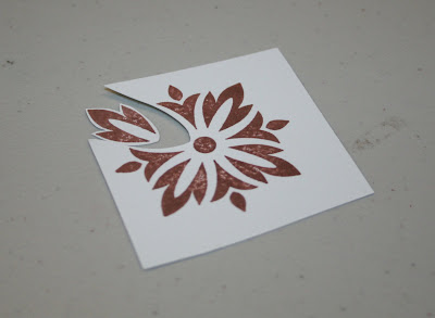Et j’allais oublier… Dans le kit d’étampes Motifs Baroque, il n’y a malheureusement pas de « feuillage » pour aller avec les jolies fleurs. J’ai donc décidé je couper le médaillon afin de me confectionner des feuilles…