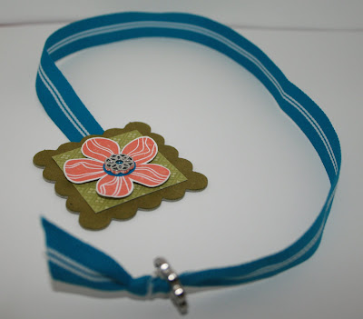Ce petit signet est confectionné avec du ruban et du carton aggloméré (chipboard), c’est ce qui le rend à peu près indestructible. C’est une superbe idée cadeau pour les Fêtes… Et avez-vous vu au bout du ruban? Et oui, les nouvelles attaches parisiennes filigranées! Vous ne trouverez rien de semblable ailleurs!!!